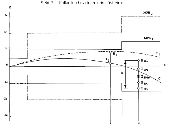 M = ölçülecek kütle Durum 1 – etki faktörü veya bozucu etkiden ileri gelen alet hatası E1’i göstermektedir. I1 yapısal hatadır. Etki faktörü veya uygulanan bozucu etkiden ileri gelen kusur (T.5.5.5), E1-I1’e eşittir. Durum 2 - ölçüm açıklığı kararlılığı testinin ilk ölçümündeki hataların ortalama değeri E ---------------------- (*) Bu şeklin amaçları açısından, etki faktörü veya bozucu etkinin karakteristik üzerinde etkili olduğu varsayılmıştır (ki bu yanlış sayılmaz). |